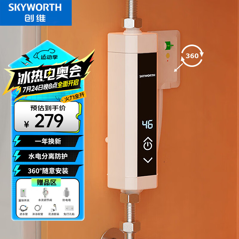 创维(Skyworth)即热式小厨宝 即热式电热水器 家用小型热水宝免储水变频恒温D842漏保款5500W+送空开+水电分离价格:379.00元!