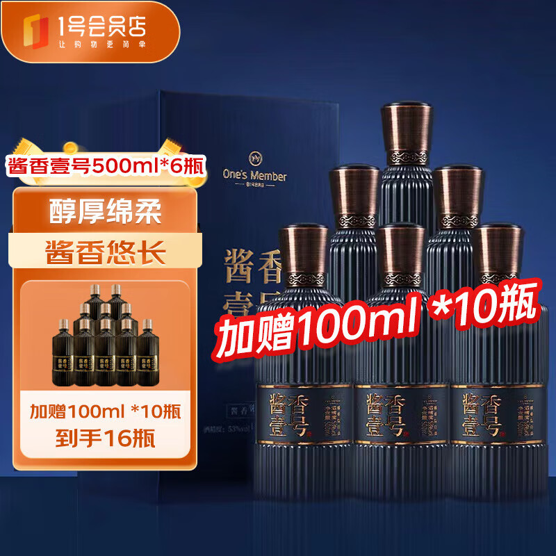 1号会员店 酱香壹号 53度 酱香型白酒 整箱装 500ml*6瓶价格:1899.00元!