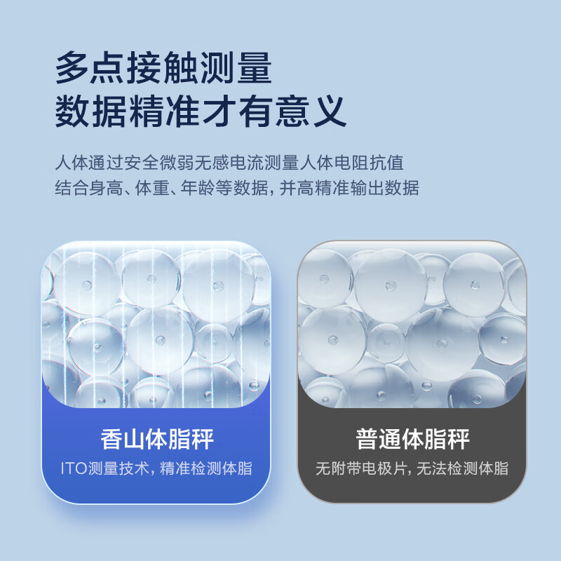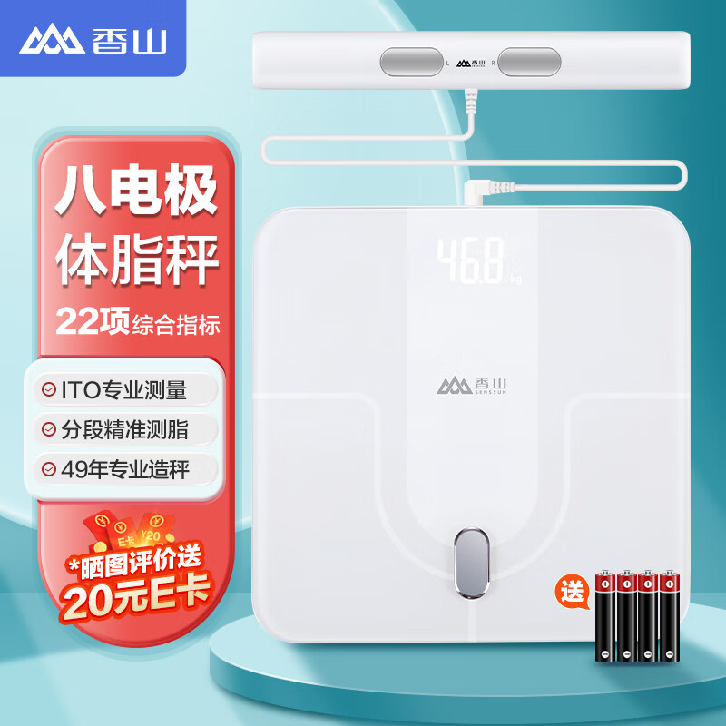 香山八电极智能体脂秤 蓝牙连接电子秤人体健康健身精准体重ITO秤面价格:199.00元!