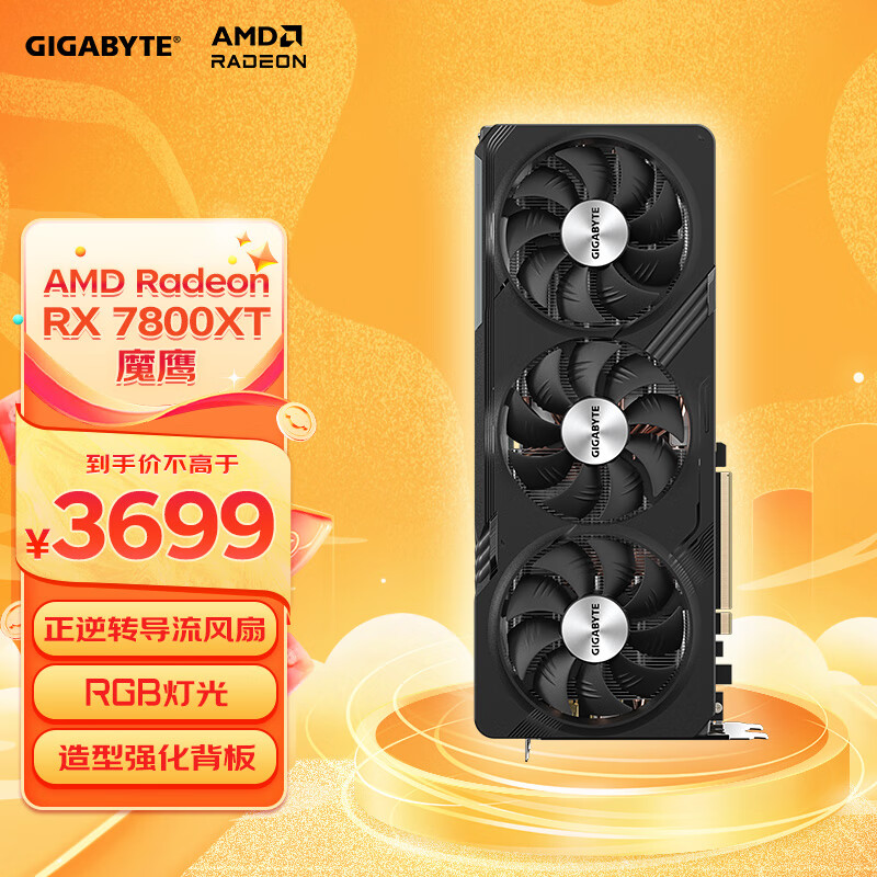 技嘉(GIGABYTE)7800XT显卡 魔鹰 AMD RADEON RX 7800XT GAMING OC RDNA3架构 16GB GDDR6游戏电竞视频剪辑显卡价格:3799.00元!
