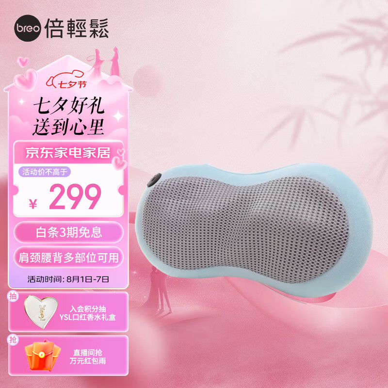 倍轻松(breo)颈部腰部按摩器BM1801腰枕颈枕 可车载按摩 轻松按摩师 送父母亲男女友七夕情人节礼物价格:299.00元!