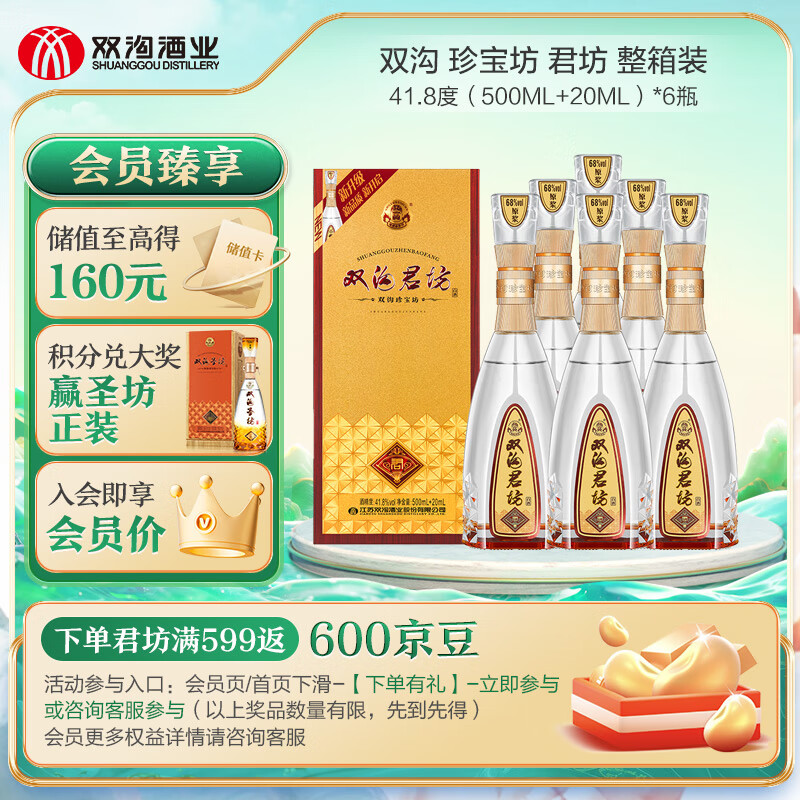 双沟 珍宝坊君坊 41.8度 (500ml+20ml)*6瓶 整箱装 浓香型白酒价格:718.00元!