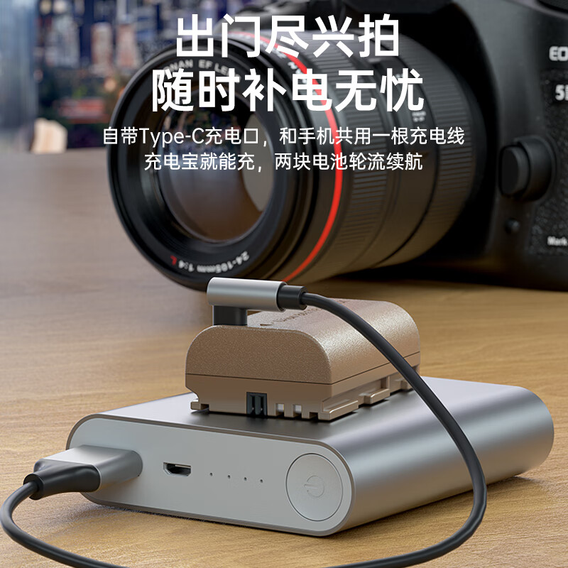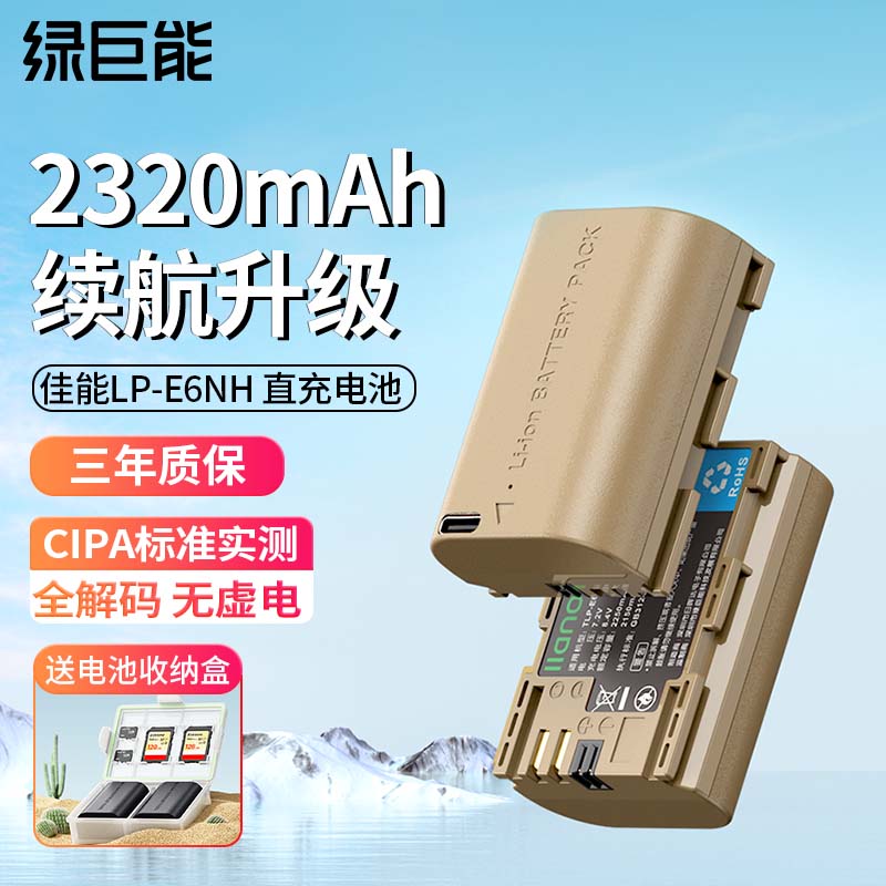 绿巨能(llano)佳能LP-E6NH相机电池5d4直充电池r6 5d3 6d2 90d 6d 70d 80d单反微单电池Type-C接口2320mAh价格:209.00元!