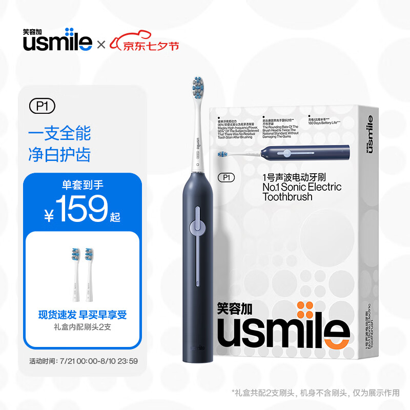 usmile 笑容加 电动牙刷 成人情侣版 软毛声波自动牙刷 P1星空蓝价格:177.89元!