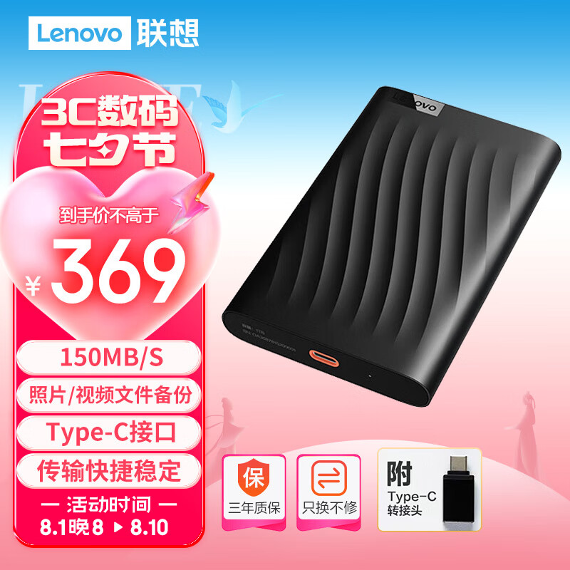 联想(Lenovo)1TB F309 Lite移动硬盘 Type-C 机械硬盘 手机直连 高速传输便携小巧稳定耐用 深空黑价格:369.00元!