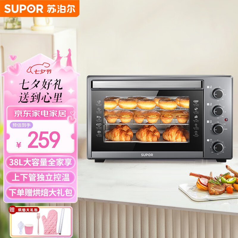 苏泊尔 (SUPOR)家用多功能电烤箱 38L大容量 上下独立控温低温发酵多层烤位易操作 钢灰色 K38FK613价格:259.00元!