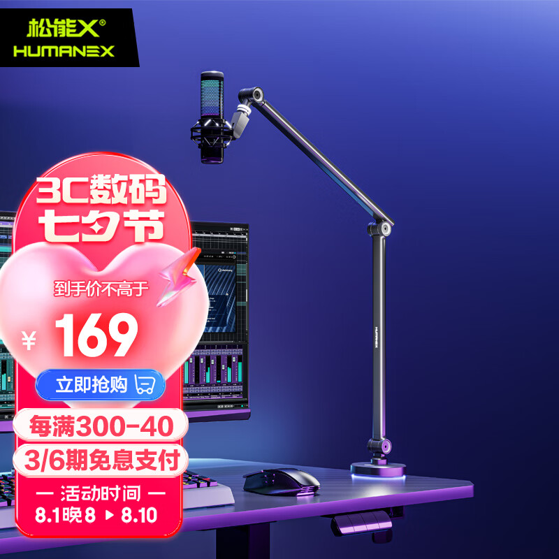 松能X麦克风话筒支架RGB底座主播直播支架桌面悬臂承重防震三段式折叠万向话筒承重1kg AX-7价格:244.00元!