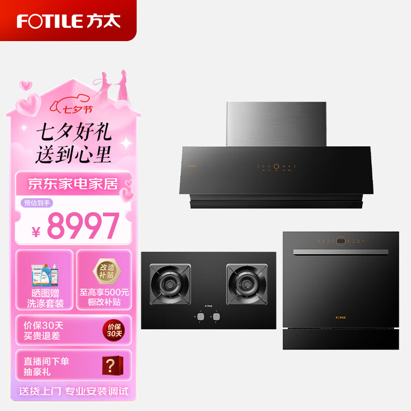 方太烟灶洗三件套 23大风量侧吸油烟机 5.2kW猛火灶 13套灶下洗碗机JCD10TA+02-TH27B+NJ01S价格:8997.00元!