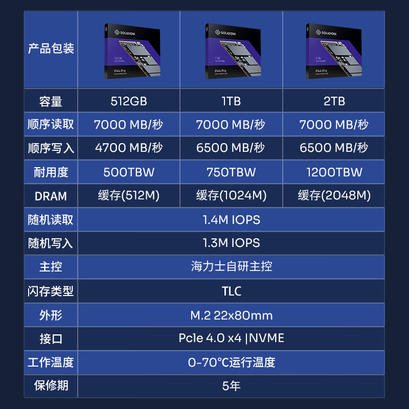 SOLIDIGM 思得P44 Pro 512G 高性能版SSD固态硬盘 M.2接口(NVMe协议 PCIe4.0*4) SK海力士价格:579.00元!