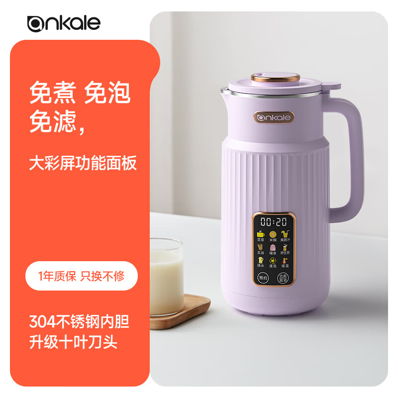 ankale破壁机 豆浆机 迷你小型家用免洗 五谷杂粮全自动免煮 破壁豆浆机 紫罗兰价格:179.00元!