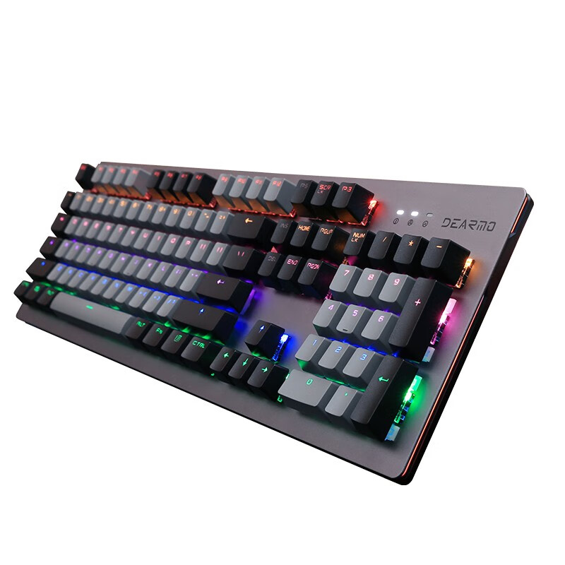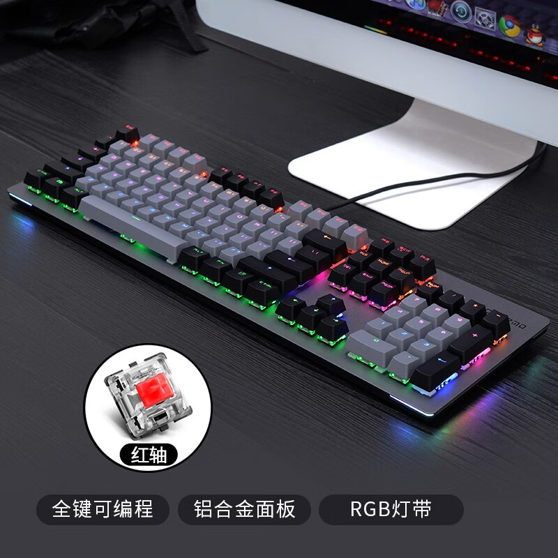 迪摩(DEARMO)F20机械键盘有线键盘游戏键盘104键混光+RGB键盘吃鸡键盘电脑键盘 深空灰 红轴价格:159.00元!