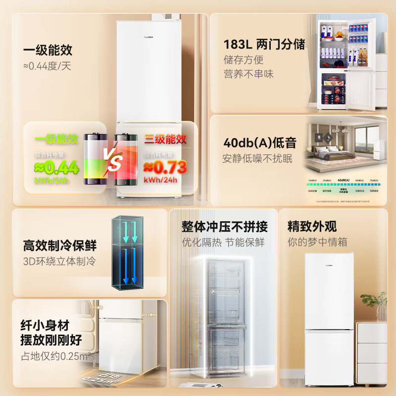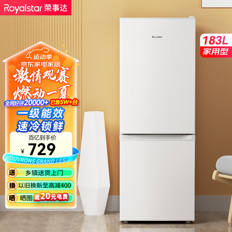 荣事达(Royalstar)183升小冰箱小型家用出租房办公室宿舍双开门两门双门二门电冰箱节能省电低音白色BCD-183L9RSZ价格:799.00元!