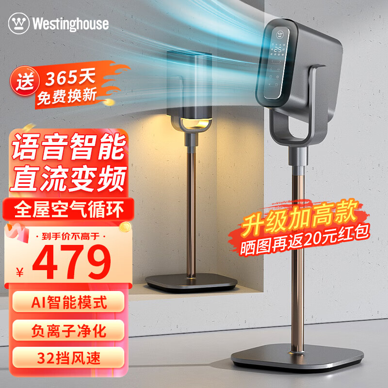 西屋(Westinghouse)空气循环扇直流变频遥控电风扇家用摇头电扇涡轮换气扇循环对流风扇落地扇WTH-XH007价格:532.00元!