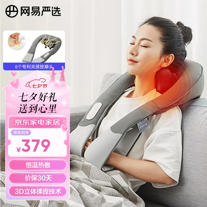 网易严选真3D揉捏 颈椎斜方肌按摩器 按摩披肩肩颈颈部腰部按摩器按摩仪热敷烟灰色 七夕礼物价格:409.00元!