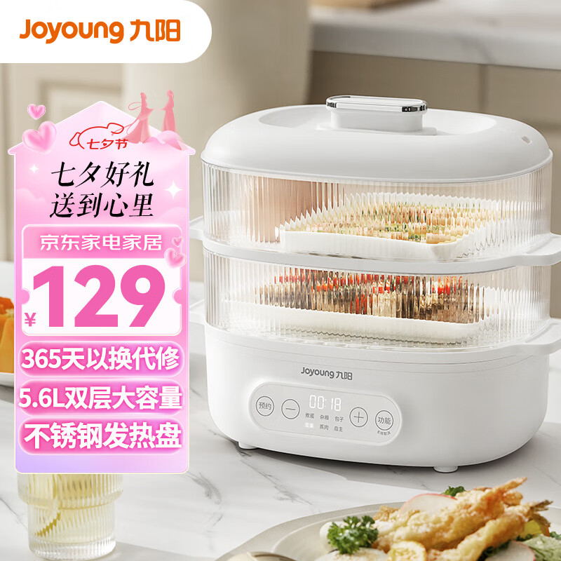 九阳(Joyoung)煮蛋器 蒸蛋器 家用电蒸锅 双层定时 智能预约 早餐蒸煮一体机 多功能蒸包子蒸锅 ZD18-GE550价格:129.00元!