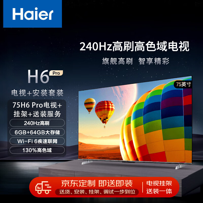 海尔(Haier)75H6 Pro 75英寸电视4K超高清240Hz屏6+64GB大屏智能液晶平板电视机+安装服务【送装一体】价格:4198.00元!