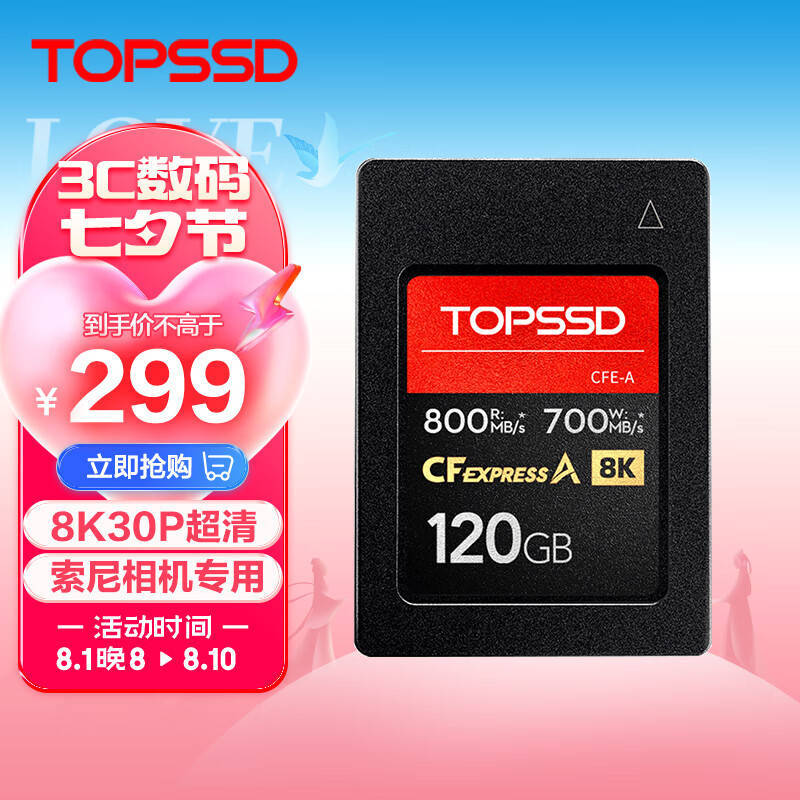 天硕(TOPSSD)CFE-A卡 cfe相机储存卡 高速800MB/s CFExpress存储卡 索尼相机内存卡 120GB价格:399.00元!