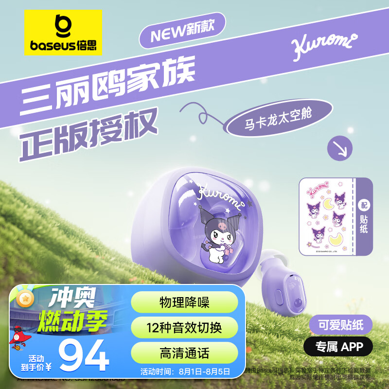 倍思WM02真无线蓝牙耳机 【三丽鸥正版授权】 佩戴舒适音乐情人节礼物适用苹果小米华为 库洛米 紫价格:119.00元!