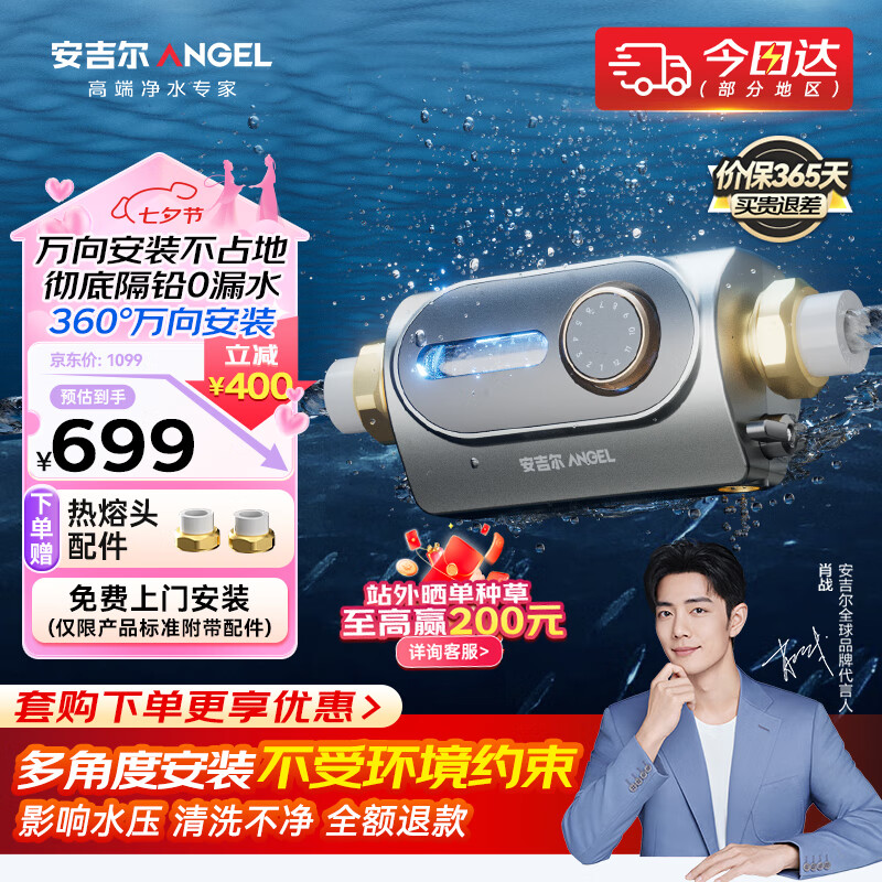 安吉尔【肖战代言】前置过滤器前十名 自动反冲洗防爆 万向安装型 全屋家用自来水净水器J3527-GWG-7000价格:699.00元!