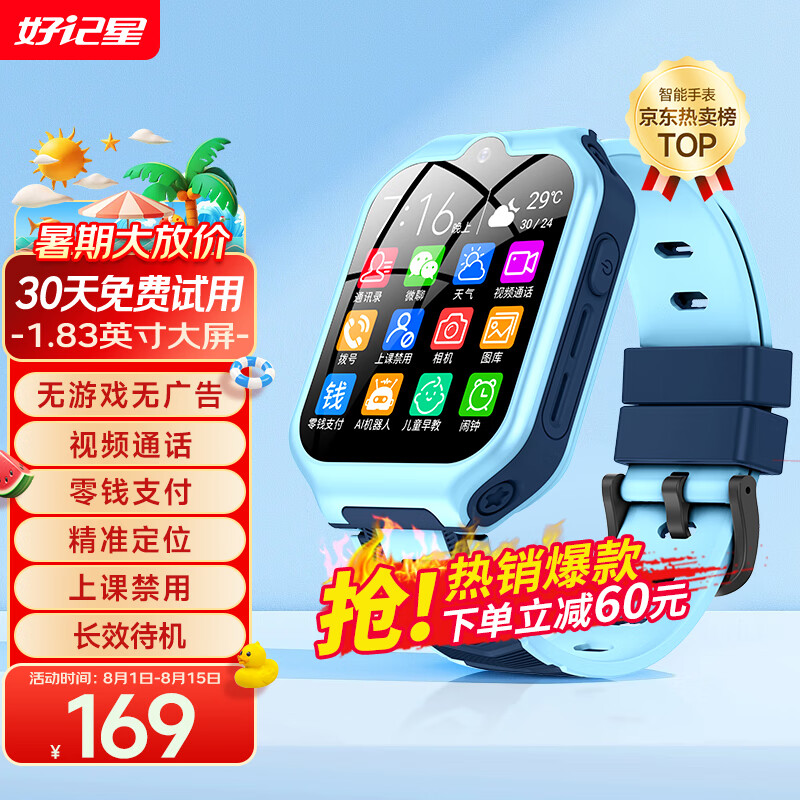 好记星【无游戏】智能儿童电话手表4G通小学生移动联通电信版防摔游泳级防水wifi精准定位学生手表 旗舰版蓝【精准定位+零钱支付+长效待机+升级大屏】价格:169.00元!