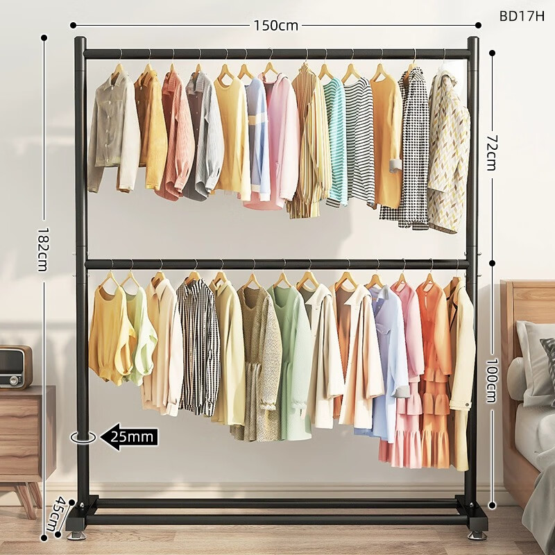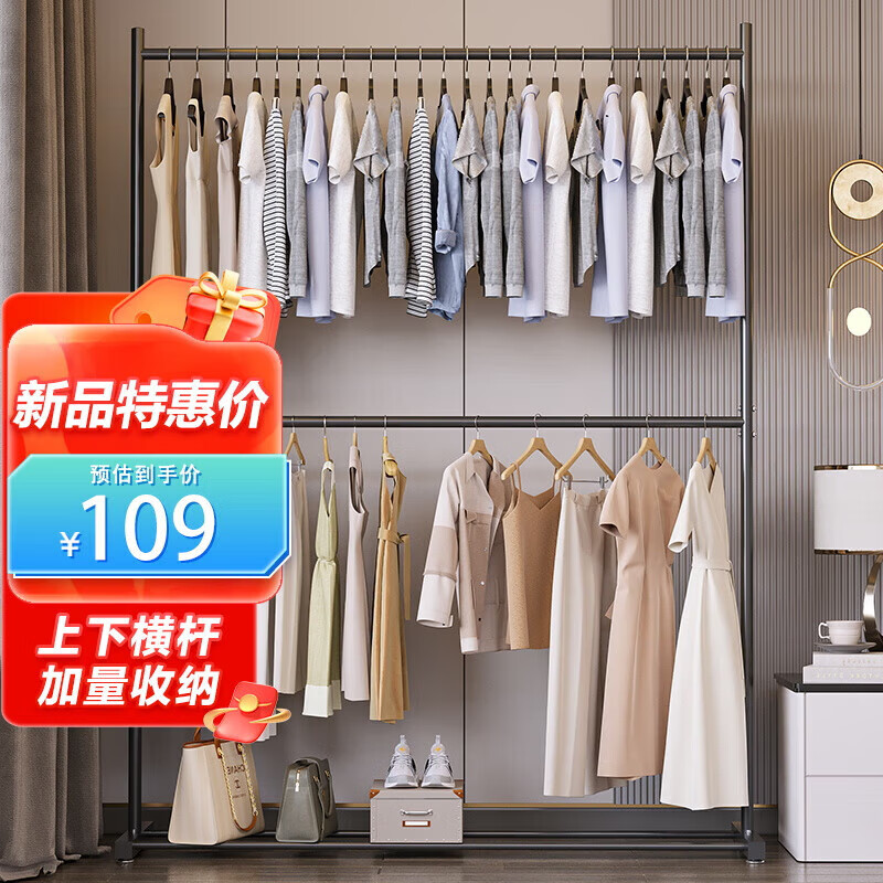 楠叶 晾衣架落地 简易双层多功能衣架 卧室挂衣架 阳台衣架SXC-13-C价格:109.00元!