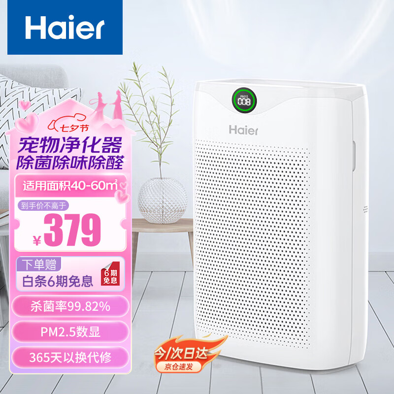 海尔(Haier)空气净化器除甲醛除雾霾除烟味母婴家用除灰尘杀菌KJ200F-M900A数显升级版价格:379.00元!
