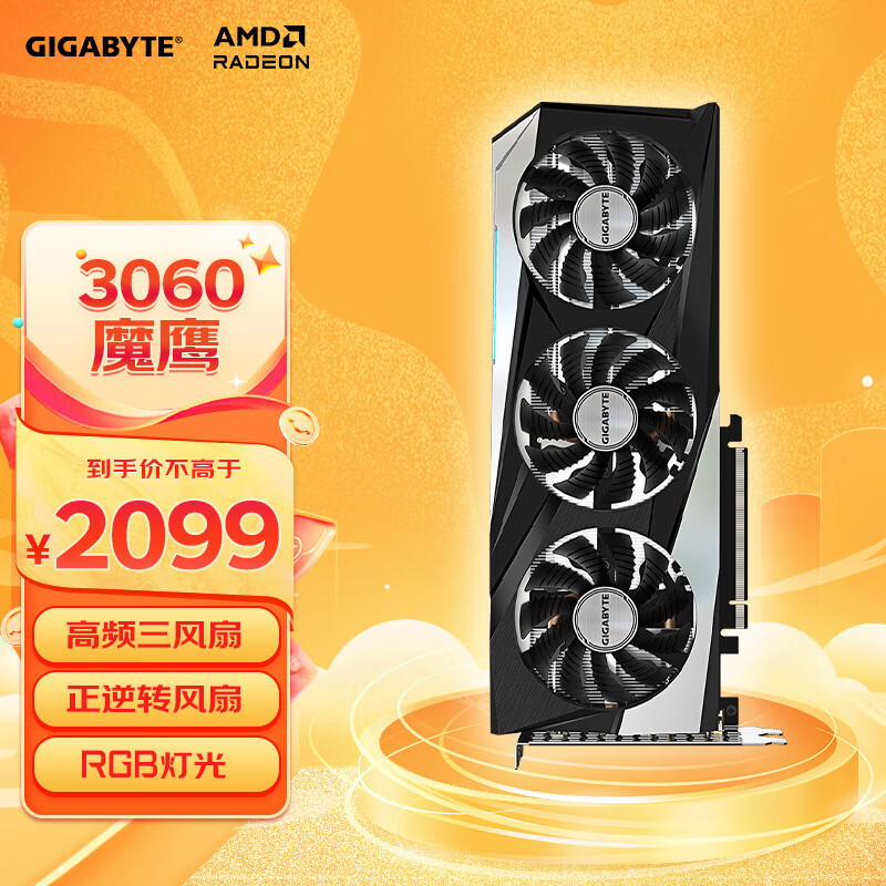 技嘉魔鹰 GIGABYTE GeForce RTX 3060 GAMING OC 12G 2.0版本电竞游戏设计智能学习电脑独立显卡支持4K价格:2099.00元!