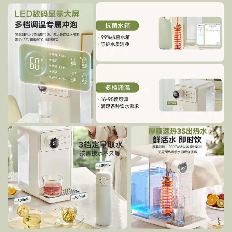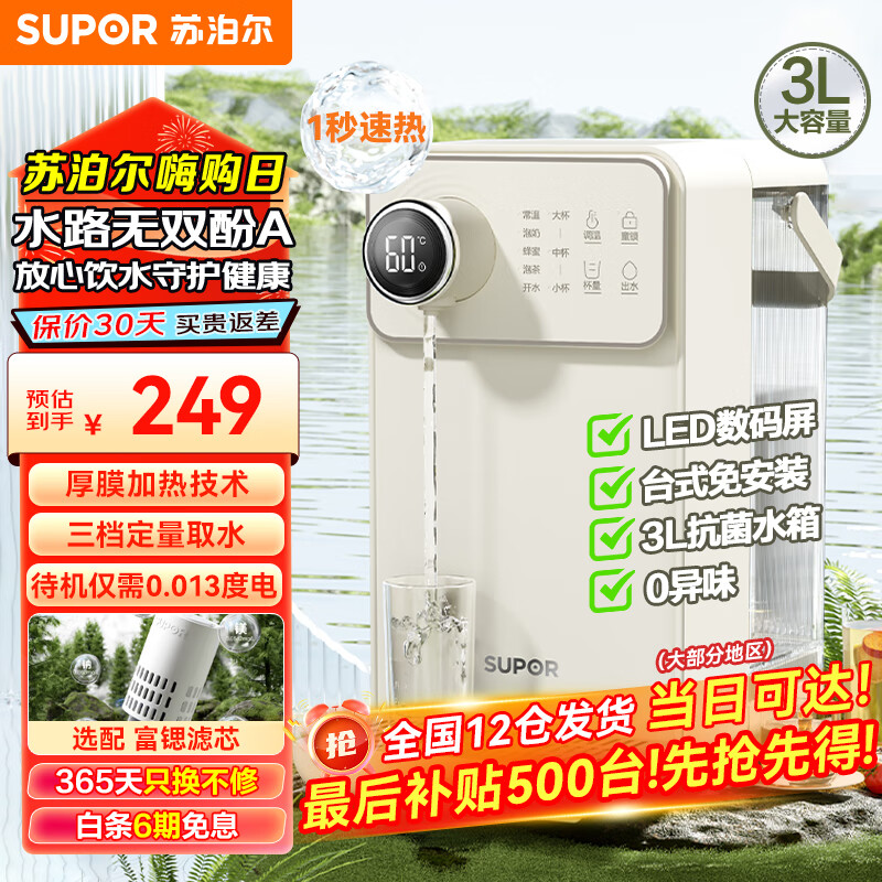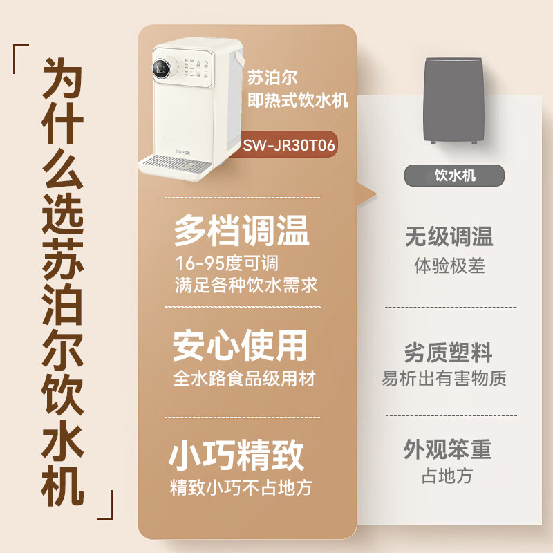 苏泊尔(SUPOR)即热式饮水机 1S速热家用台式小型一体免安装 桌面直饮机电水壶 矿化过滤净饮机 SW-JR30T06价格:249.00元!