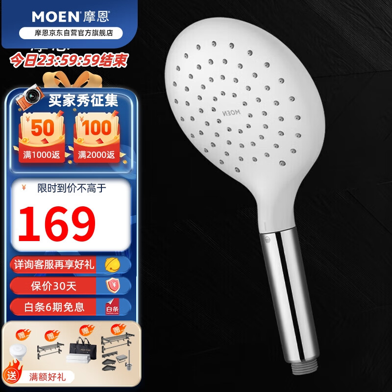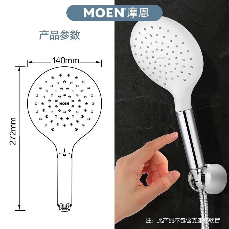 摩恩(MOEN)大面板水呼吸手持花洒 140mm直径多功能手持花洒HH3004价格:169.00元!