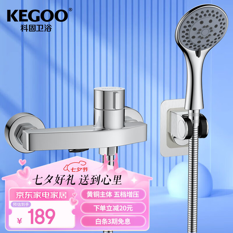 科固(KEGOO)淋浴水龙头手持喷头软管三件套 浴室冷热混水阀简易花洒套装K3008价格:209.00元!