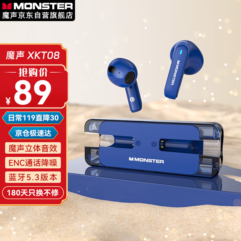 魔声(Monster) XKT08蓝牙耳机真无线智能降噪潮流外观半入耳式耳机通用华为苹果小米手机 蓝色价格:119.00元!