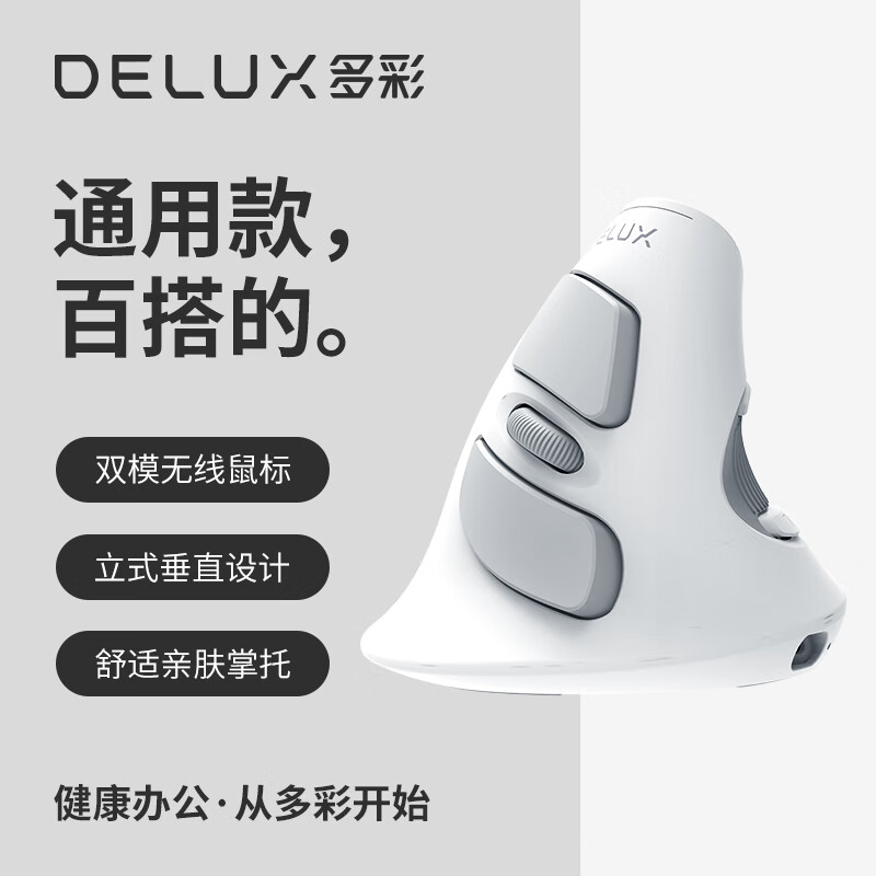 多彩(DeLUX) M618G DB人体工学垂直鼠标 立式鼠标 无线蓝牙鼠标办公鼠标 可拆卸掌托 可充电 白灰价格:139.00元!