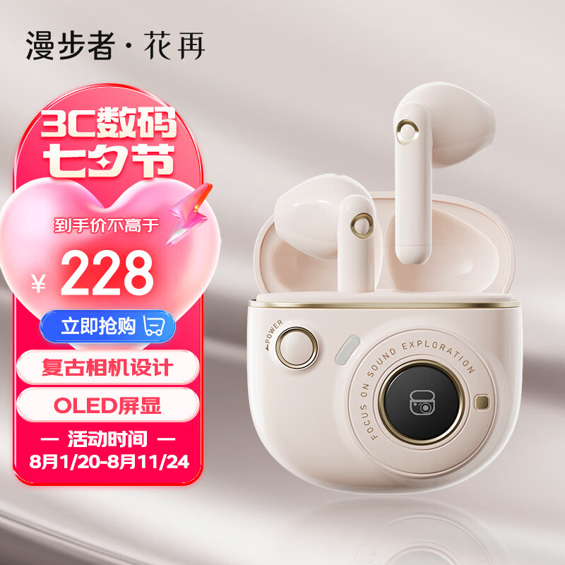 漫步者花再 TO-U3 Plus真无线蓝牙耳机 半入耳式耳机 适用苹果华为小米 蓝牙5.3 礼物礼盒节日送礼 牙粉价格:268.00元!