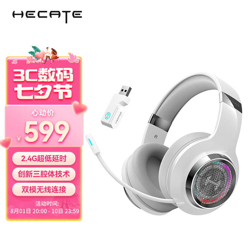 漫步者(EDIFIER)HECATE G6pro 2.4G蓝牙无线7.1游戏耳机头戴式 双模电脑电竞吃鸡耳机耳麦 礼盒包装送礼 银翼白价格:699.00元!