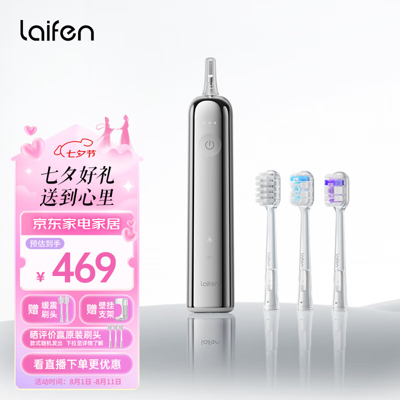 laifen徕芬新一代扫振电动牙刷成人情侣礼物 莱芬深度清洁便携牙刷 男士女士生日七夕情人节礼物 镜面(赠缓震刷头*2+支架*1)价格:900.00元!