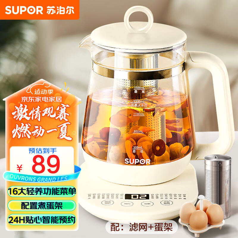 苏泊尔(SUPOR)1.5L养生壶热水壶 煮茶器煮茶壶 电水壶 恒温电热水壶 保温花茶壶烧水壶 带滤网 SW-15YJ11A价格:89.00元!