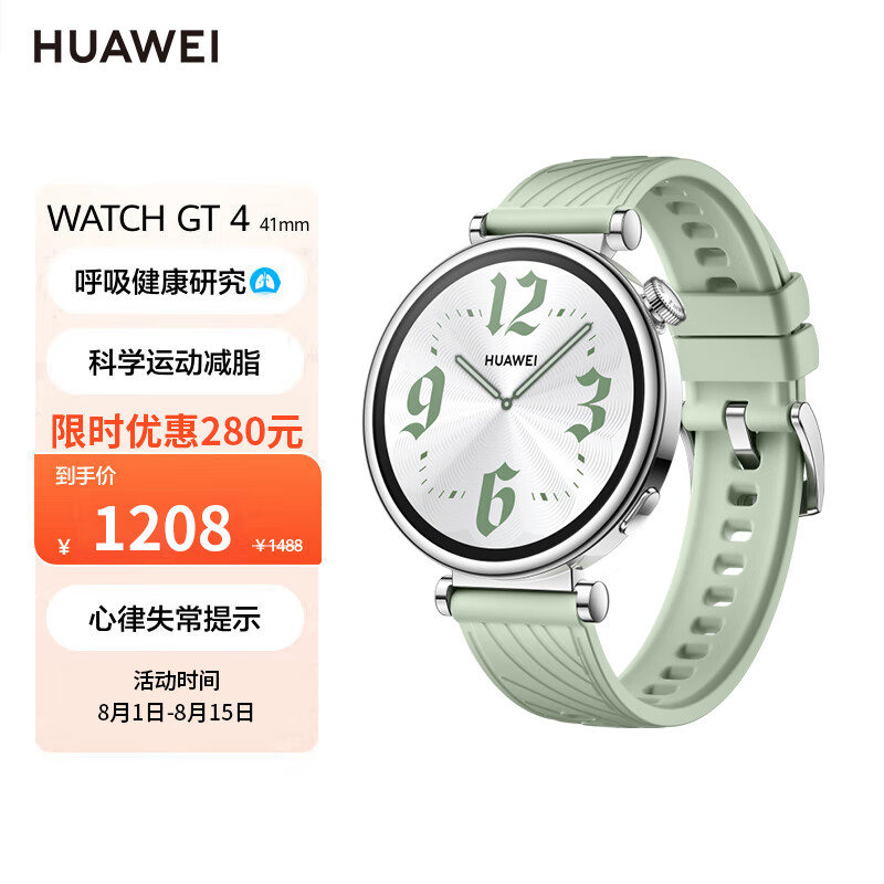 华为(HUAWEI)WATCH GT4华为智能手表科学运动减脂呼吸健康研究心律失常提示草木绿送女友女表价格:1208.00元!