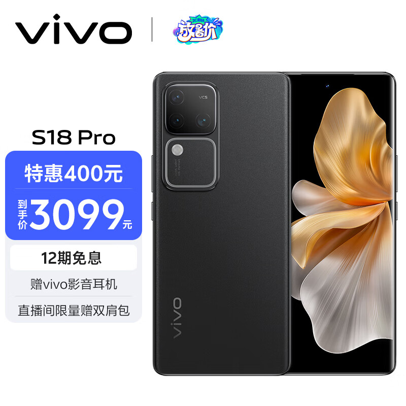 vivo S18 Pro 12GB+512GB 玄黑 天玑9200+旗舰芯片 后置影棚级柔光环 5000mAh超薄蓝海电池 拍照 手机价格:3499.00元!