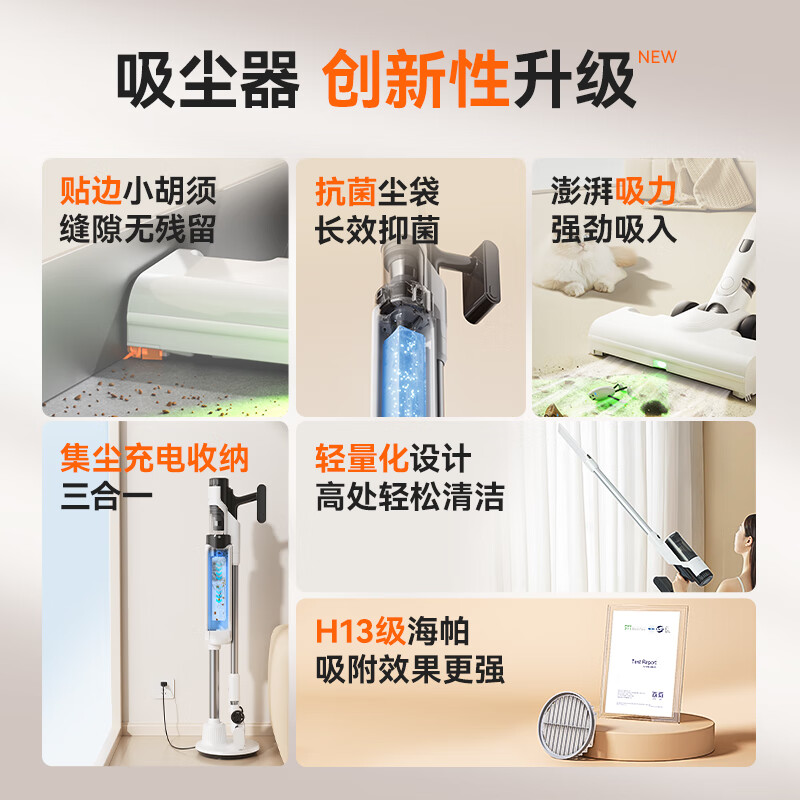 特色功能:毛发防缠绕,电池可拆卸,一键倒尘,感应控制,LED屏显