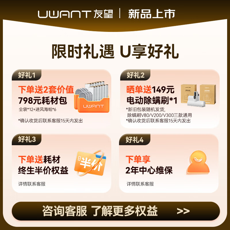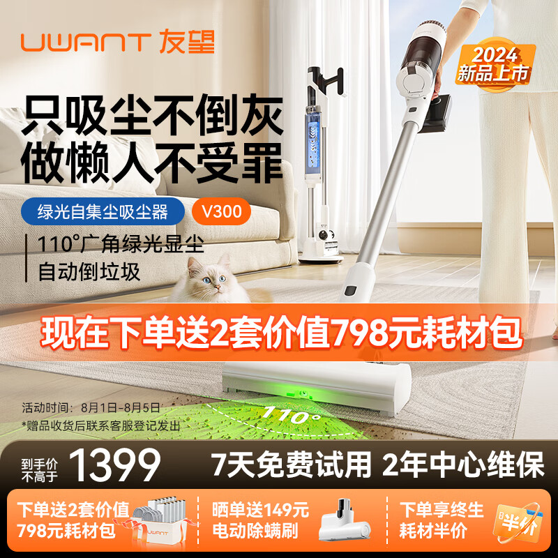 uwant友望吸尘器家用无线手持智能自集尘基站广角巨幕绿光显尘宠物毛发防缠绕只做懒人不倒灰uwantV300价格:1399.00元!