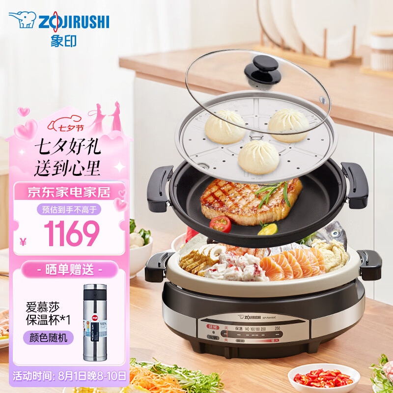 象印(ZO JIRUSHI)多用途锅多功能电火锅 家用电热锅/电蒸锅/电炒锅/电炖锅EP-RAH30C(煎烤盘)价格:1329.00元!