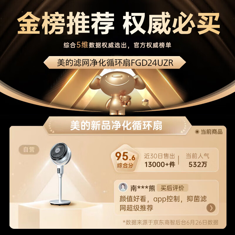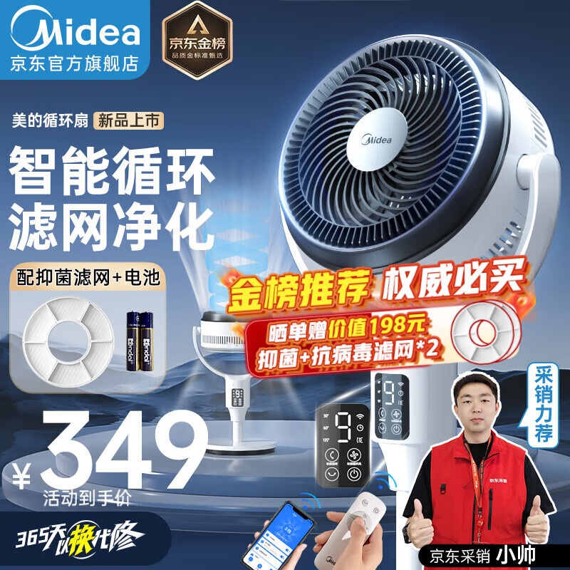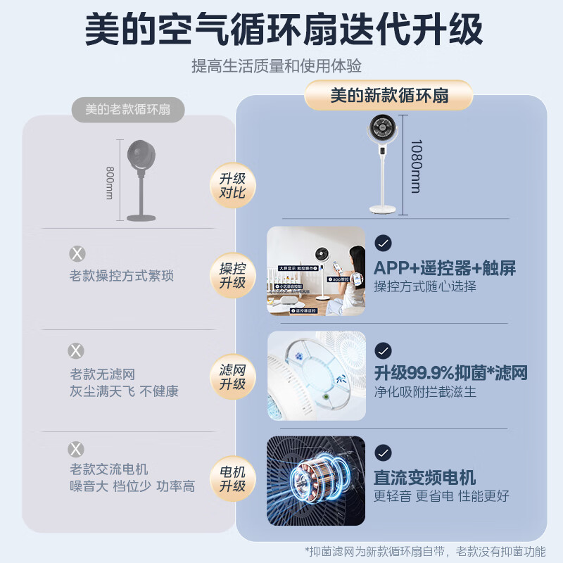 美的(Midea)空气循环扇直流变频电风扇落地扇家用WiFi智控电扇轻音轻羽扇 【滤网净化·APP智控】变频轻音-FGD24UZR价格:499.00元!