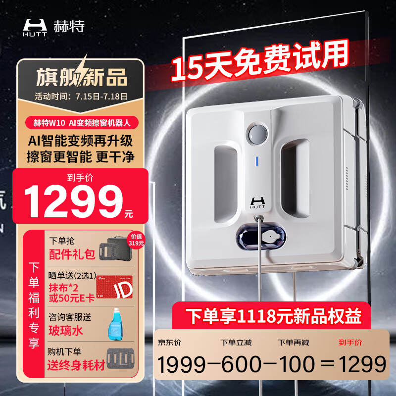 赫特擦窗机器人W10全自动变频擦玻璃机器人高层外窗家用擦玻璃神器擦窗神器价格:1299.00元!