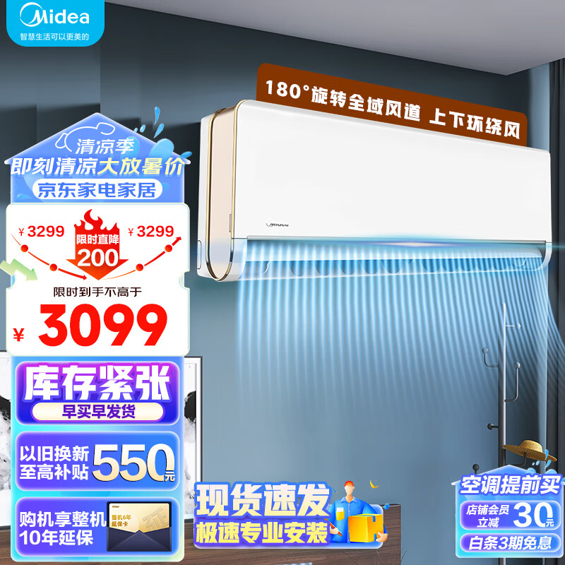 美的(Midea)空调 大1.5匹 旋耀升级款新一级能效 变频冷暖 壁挂式空调挂机 智能家电 KFR-35GW/G3-A1N7价格:3099.00元!