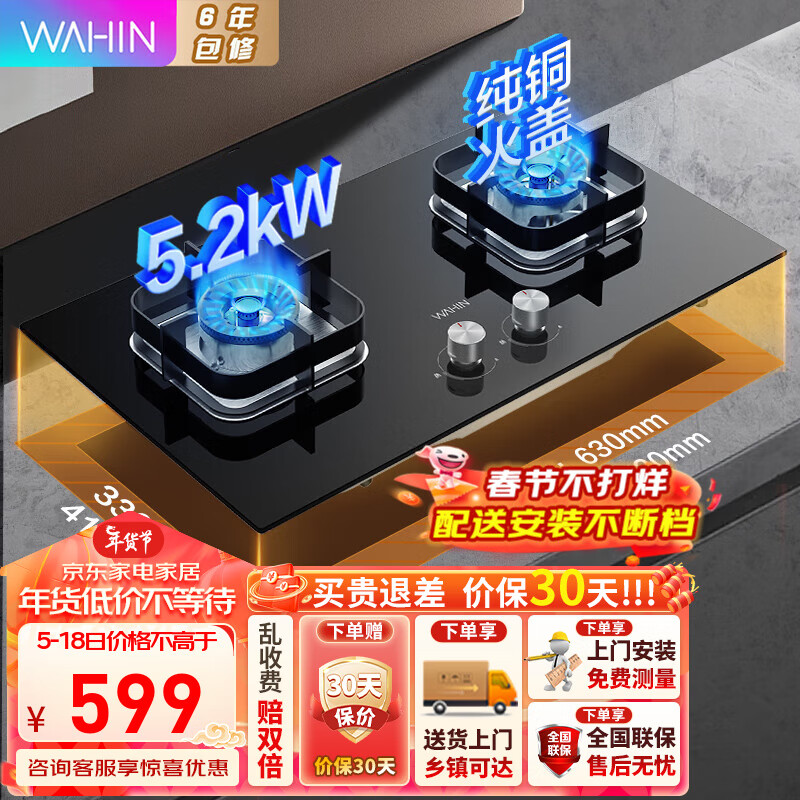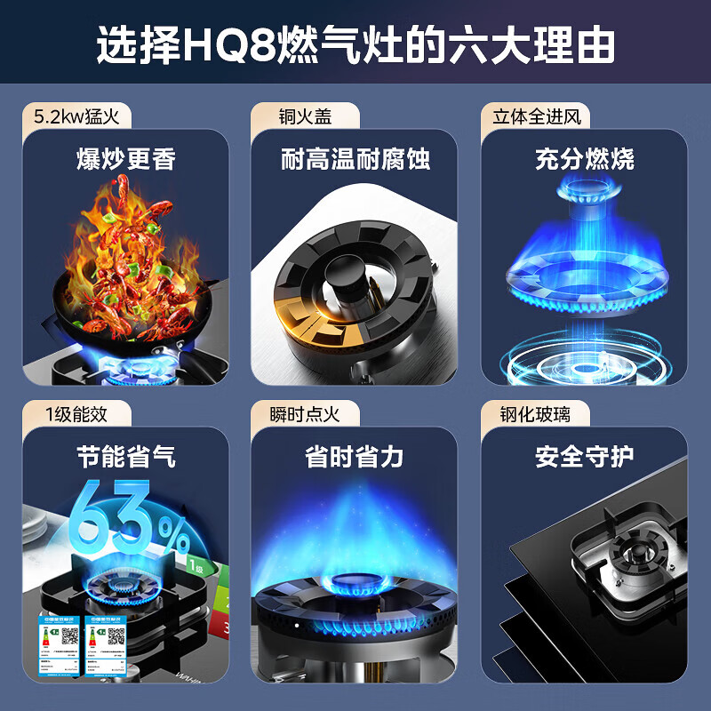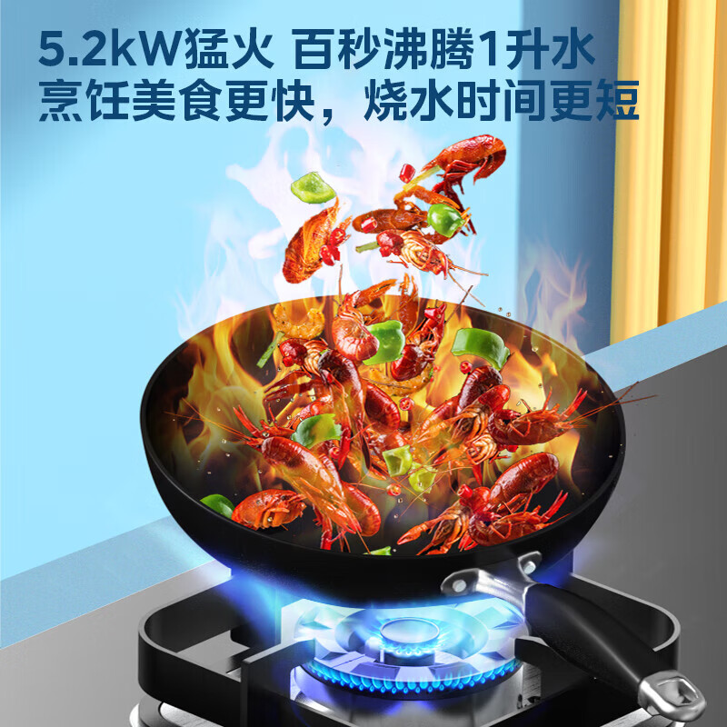 美的(Midea)出品燃气灶天然气5.2kw大火力双眼灶HQ8 厨房家用煤气灶液化气灶钢化玻璃面板台嵌两用灶WAHIN 【5.2KW铜火盖 防风支架】天然气价格:599.00元!