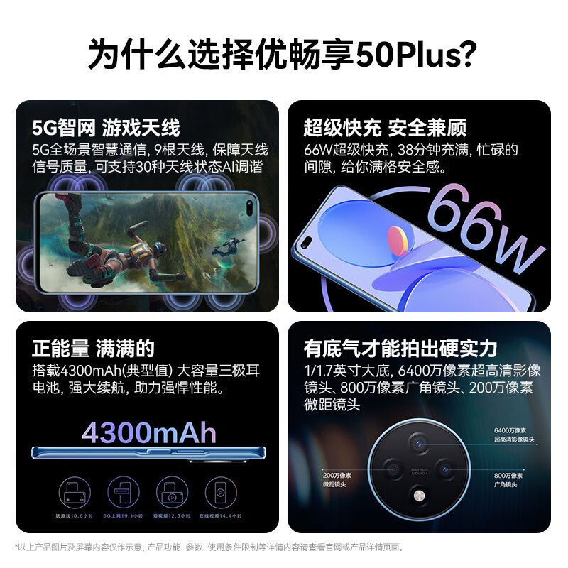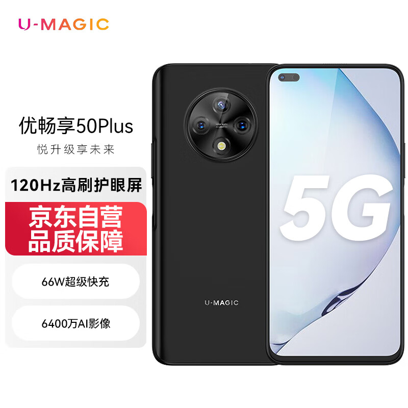 U-Magic华为智选 优畅享50 Plus 5G通120Hz高刷 66W超级快充 6400万AI影像 8GB+128GB 雅致黑 手机价格:2299.00元!