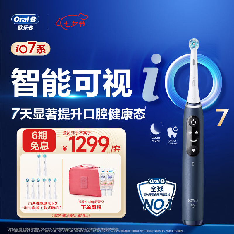 欧乐B成人电动牙刷iO7智能可视磁波刷iO系列圆头微震科技深度清洁牙龈按摩送男友送女友七夕情人节礼物价格:1299.00元!