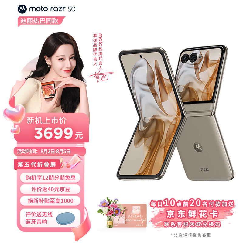摩托罗拉 联想moto razr 50 3.6英寸大外屏 IPX8抗水 60万次折叠认证 第五代折叠屏 5GAI手机 8+256 大象灰价格:3699.00元!