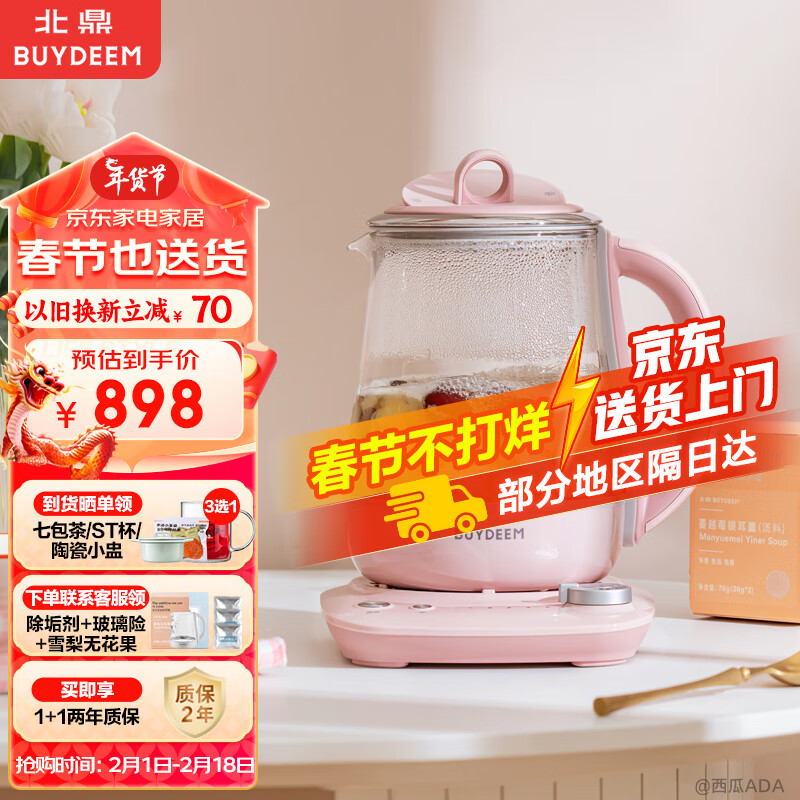 北鼎(Buydeem)智能养生壶烧水壶 家用电热水壶多功能煮茶器恒温热水壶智能APP互联 Smart K单壶猪猪粉价格:898.00元!