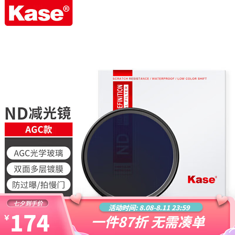 卡色(Kase)ND减光镜 ND1000(减10档) 中灰密度镜水流瀑布拉丝如絮车流轨迹慢门长时间曝光 72mm AGC款价格:199.00元!